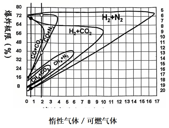 某多组分可燃气组成为:H2-12.4%,CO-27.3%,CO2-6.2%,CH4-0.7%,结合图片,求该多组分可燃混合气的爆炸极限。