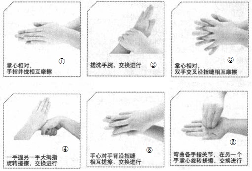 在第三个“全球洗手日”中,联合国儿童基金会提出的“六步洗手法”,下列排列顺序正确的是( )。