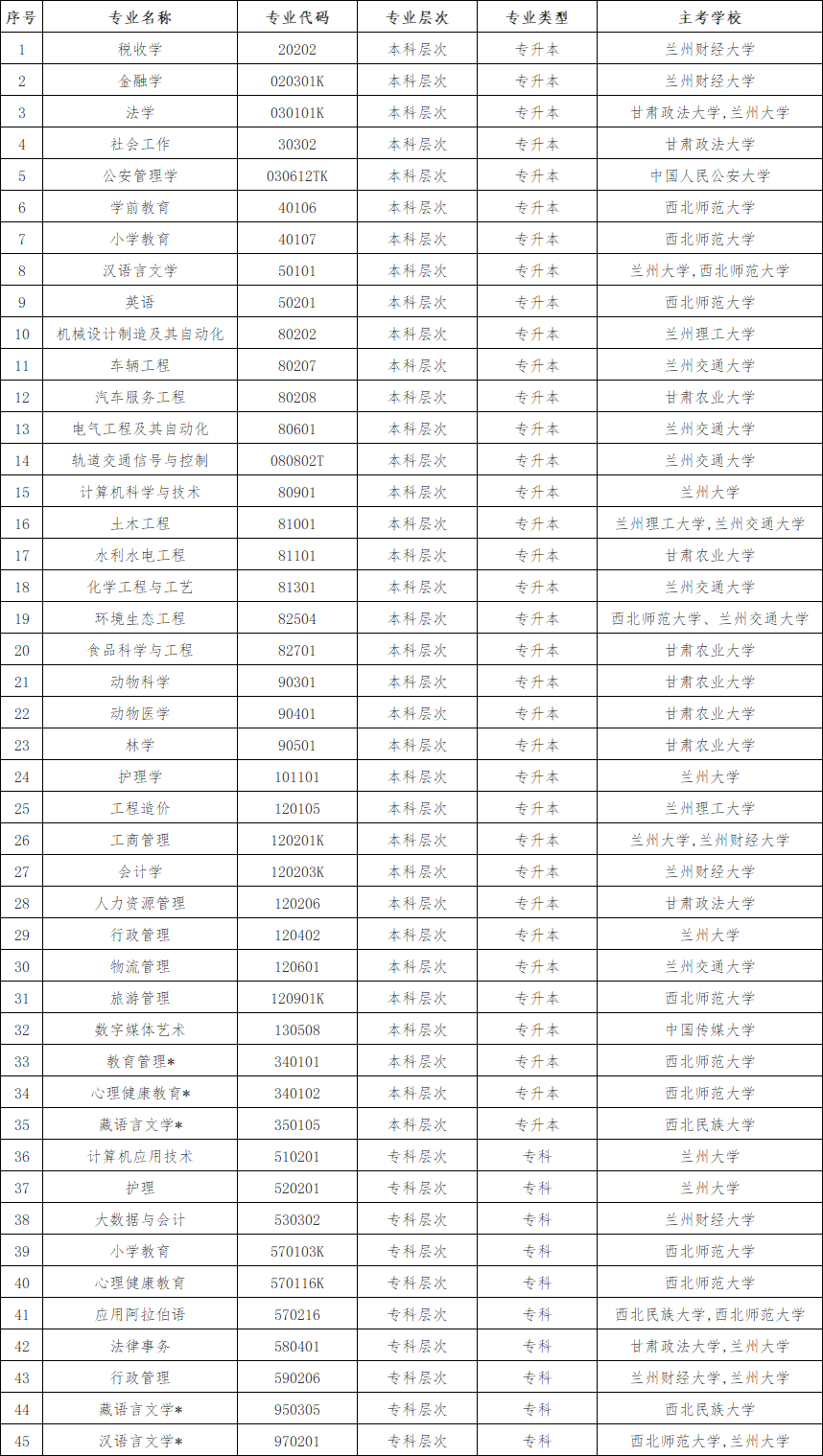 甘肃省高等教育自学考试2024年专业开考情况统计表